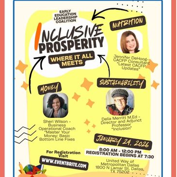 Early Education Leaders Coalition is a non-profit 501c3 entity and does not discriminate on the basis of race, color, religion, gender, gender expression, age, military status, national origin, disability, marital status, LGBTQIA+, and/ any sexual orientation in any of its activities or operations. We are committed to providing an inclusive and welcoming environment for all members of our board, staff, clients, volunteers, subcontractors, vendors, student’s and clients. *Nutritious meals are provided in partnership with TDA, CACFP program.